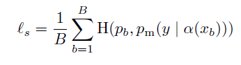 FixMatch에는 두 종류의 cross-entropy term이 포함된다. Supervised loss와 Unsupervised loss이다(ls, lu). 특히 ls는 일반적인 cross entropy loss이다. labeled data에 대한 loss를 구하는데 사용된다.