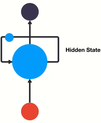 - Hidden state: Representation of previous input. Loop! 이전 input의 상태를 기억하고 있는다.
